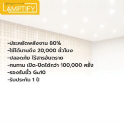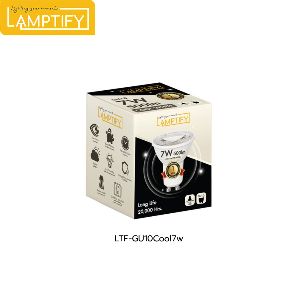 หลอดไฟ LED ขั้ว GU10 กำลังไฟ 7 วัตต์ ให้ความสว่าง 500 ลูเมน มีให้เลือก 2 โทนสี ได้แก่ แสงเหลือง 3000K และแสงคูลไวท์ 4000K ประหยัดพลังงานได้สูงสุดถึง 86% ใช้กับระบบไฟบ้าน 220V (50Hz) ติดตั้งง่าย เพียงเสียบเข้าขั้ว GU10 ก็พร้อมใช้งานทันที