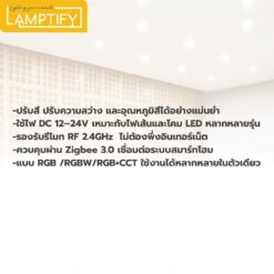 ตัวควบคุมรุ่นนี้รองรับการเชื่อมต่อผ่าน Zigbee 3.0 ซึ่งเป็นมาตรฐานสมาร์ทโฮมที่มีความเสถียรสูง สามารถใช้งานร่วมกับ Zigbee Gateway ที่รองรับ เพื่อควบคุมไฟผ่านแอปบนสมาร์ทโฟน ตั้งเวลาเปิด-ปิด สร้างฉากแสง และสั่งงานด้วยเสียง ช่วยเพิ่มความสะดวกสบายและประสบการณ์การใช้งานที่ทันสมัยมากยิ่งขึ้น