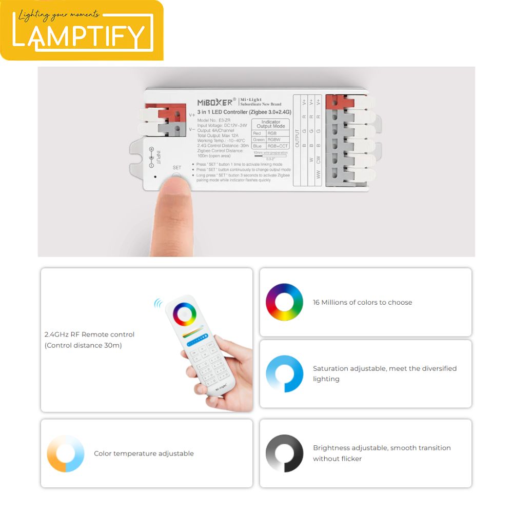 ตัวควบคุมไฟ E3-ZR LED 3 in 1 รองรับ RGB RGBW RGB+CCT ควบคุมผ่าน Zigbee 3.0 และรีโมท 2.4G สมาร์ทโฮม