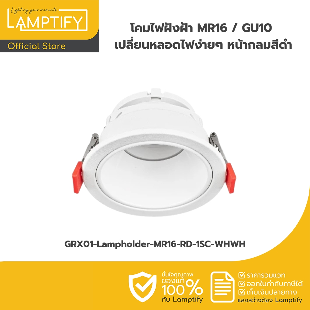 Lamptify Spot Light Fixture ขาสปริง โคมไฟดาวน์ไลท์ ใช้ได้กับขั้ว GU5.3( MR16 )แบบกลม หน้าเดี่ยว สีขาว