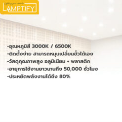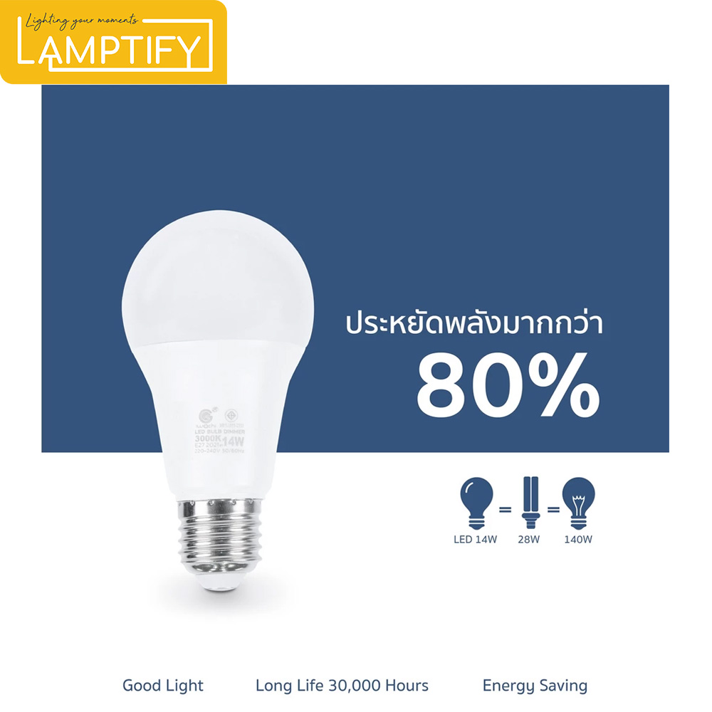 ประหยัดพลังงานสูงสุดถึง 80% ช่วยลดค่าไฟในบ้าน ให้แสงสว่างสบายตา เลือกได้ 2 โทนสี Warm White (3000K) และ Daylight (6500K) พร้อม 2 ขนาดความสว่าง 3W/ 5W / 7W /9W/ 13W/ 15W/ 18W/ 21W ตัวหลอดน้ำหนักเบา ติดตั้งง่าย หมุนใส่แทนหลอดเดิมได้ทันที วัสดุคุณภาพดี ทนความร้อน อายุการใช้งานยาวนานถึง 50,000 ชั่วโมง พร้อมรับประกันสินค้า 1 ปี เหมาะสำหรับใช้งานภายในบ้านทุกพื้นที่