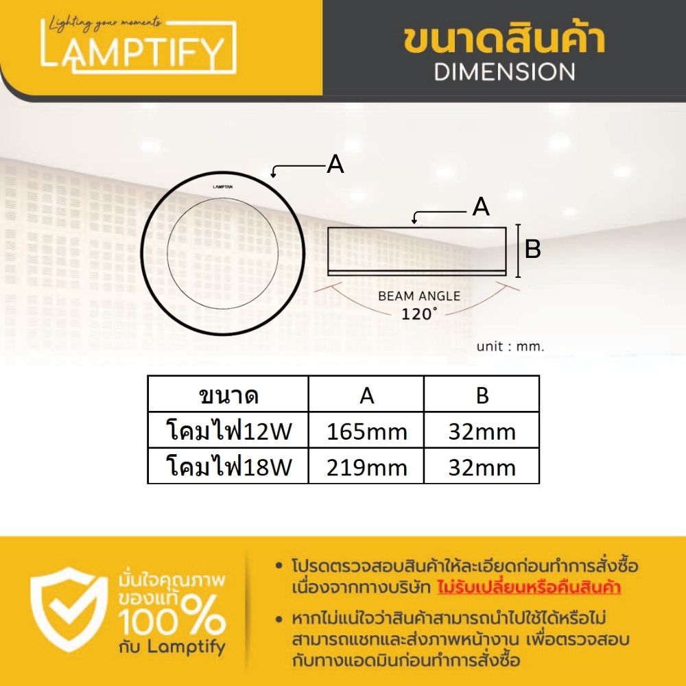 สเปกเด่น: CRI >80 | มุมกระจายแสง 127° | อายุการใช้งาน 25,000 ชม. | มอก.1955-2551