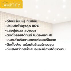 โคมไฟดาวน์ไลท์ แบบติดลอย (ไม่ต้องเจาะฝ้า) ดีไซน์โมเดิร์น ติดตั้งง่าย อุปกรณ์ครบชุด มีให้เลือก 2 สี ดำ (Loft) และ ขาว (Minimal) พร้อมโทนแสง Daylight 6500K และ Warm White 3000K เหมาะสำหรับบ้าน คอนโด และออฟฟิศ
