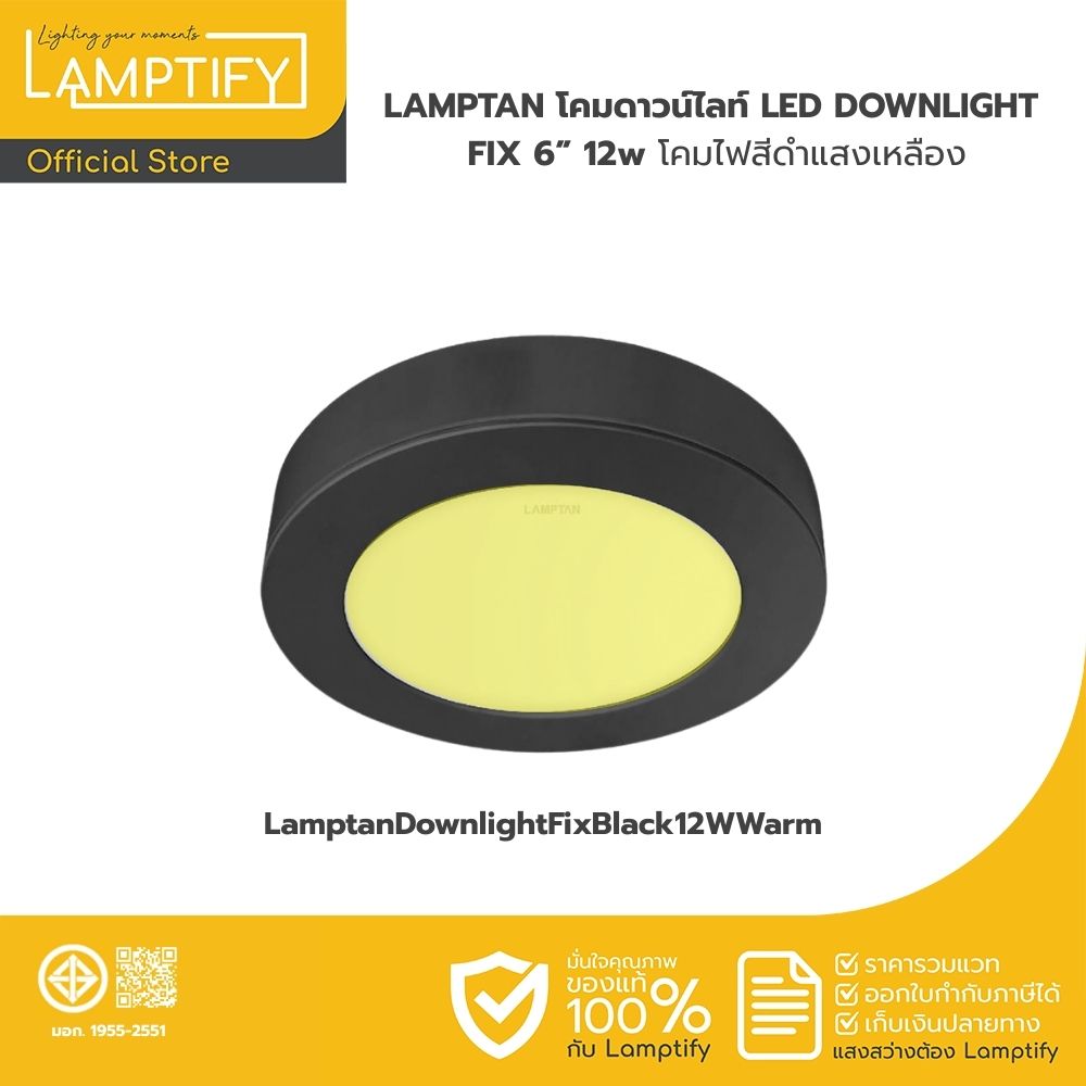 Lamptan ดาวน์ไลท์ติดลอย Downlight LED รุ่น FIX 6นิ้ว 12w สีดำแสงเหลือง