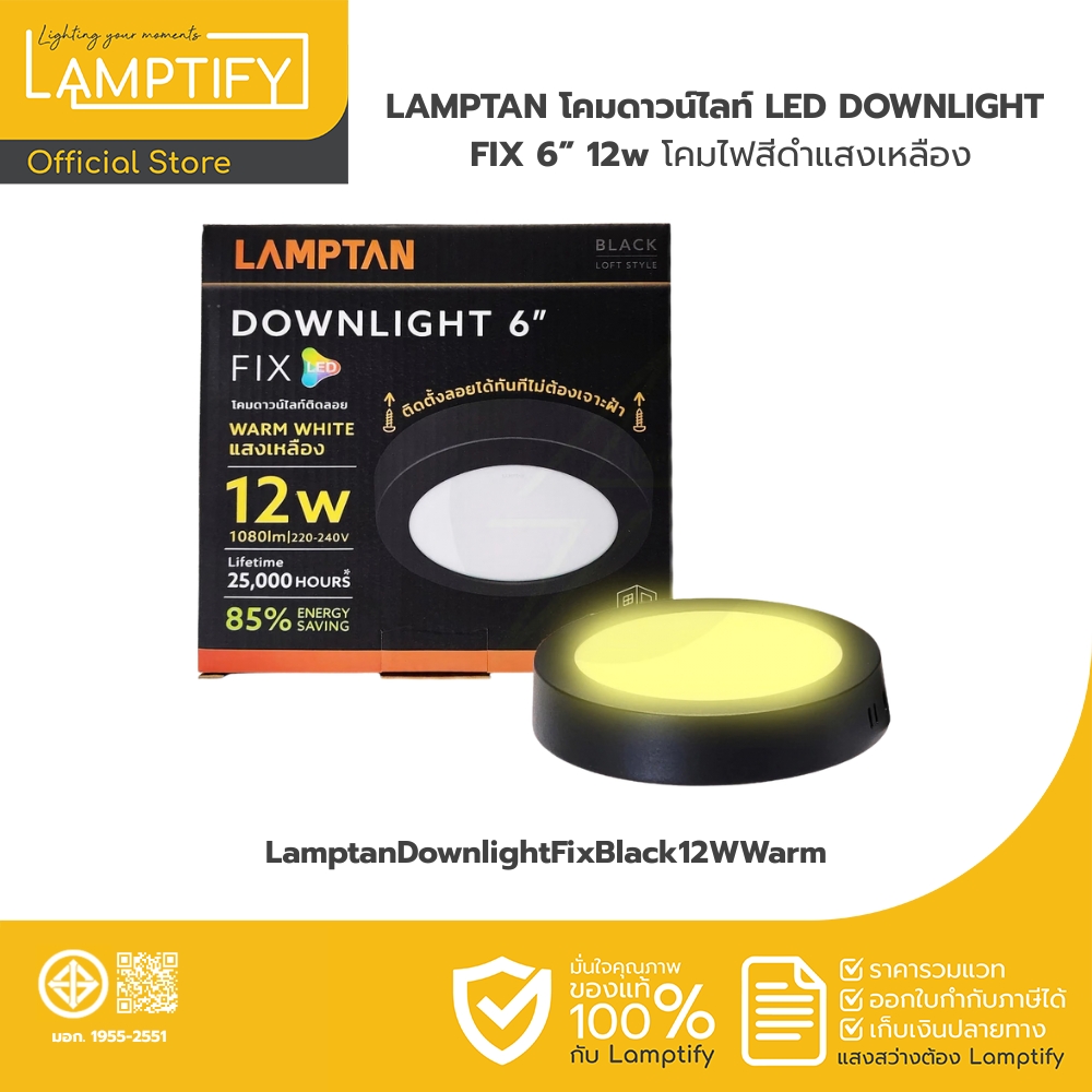 Lamptan ดาวน์ไลท์ติดลอย Downlight LED รุ่น FIX 6นิ้ว 12w สีดำแสงเหลือง