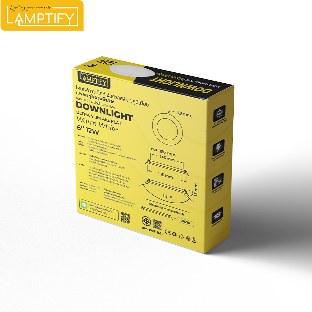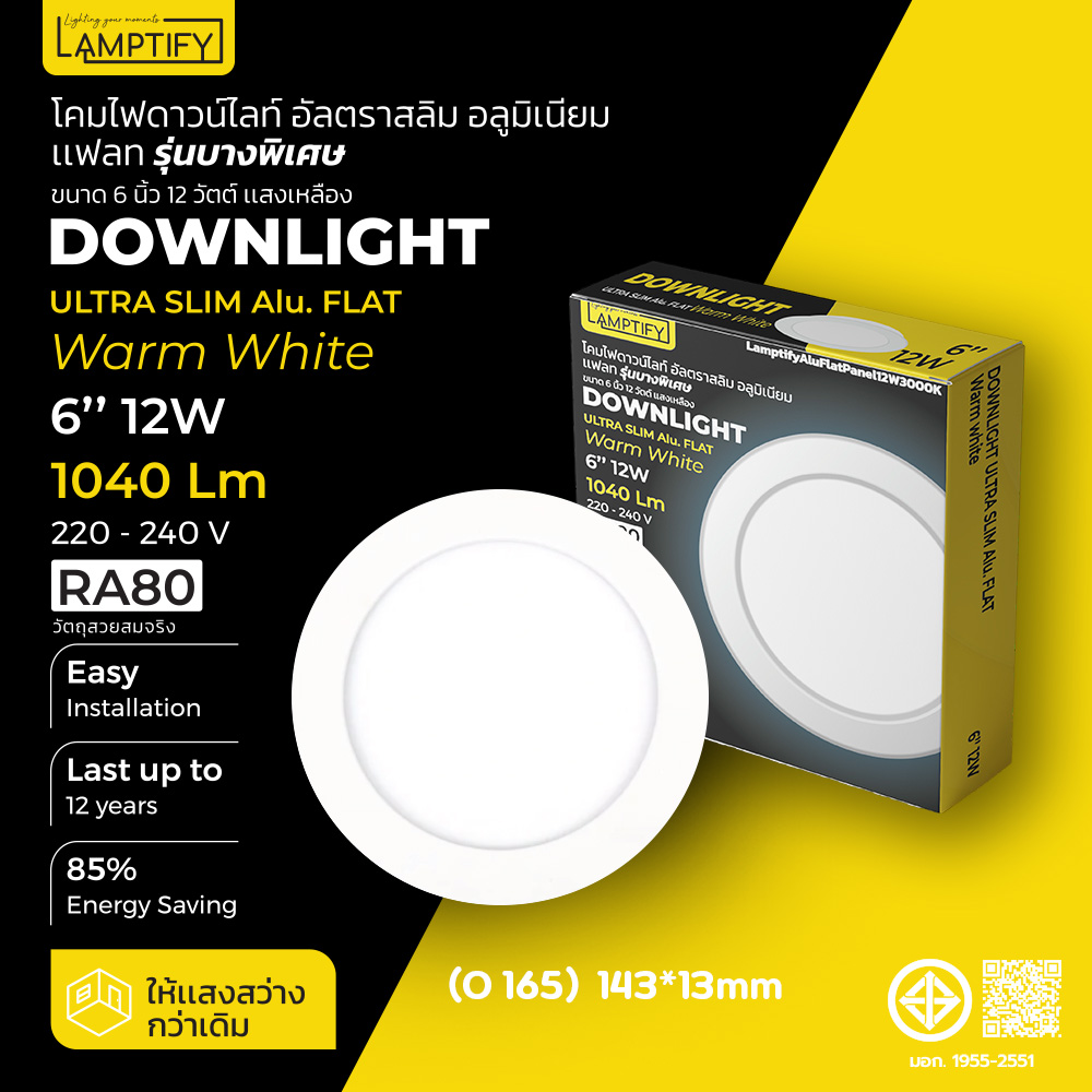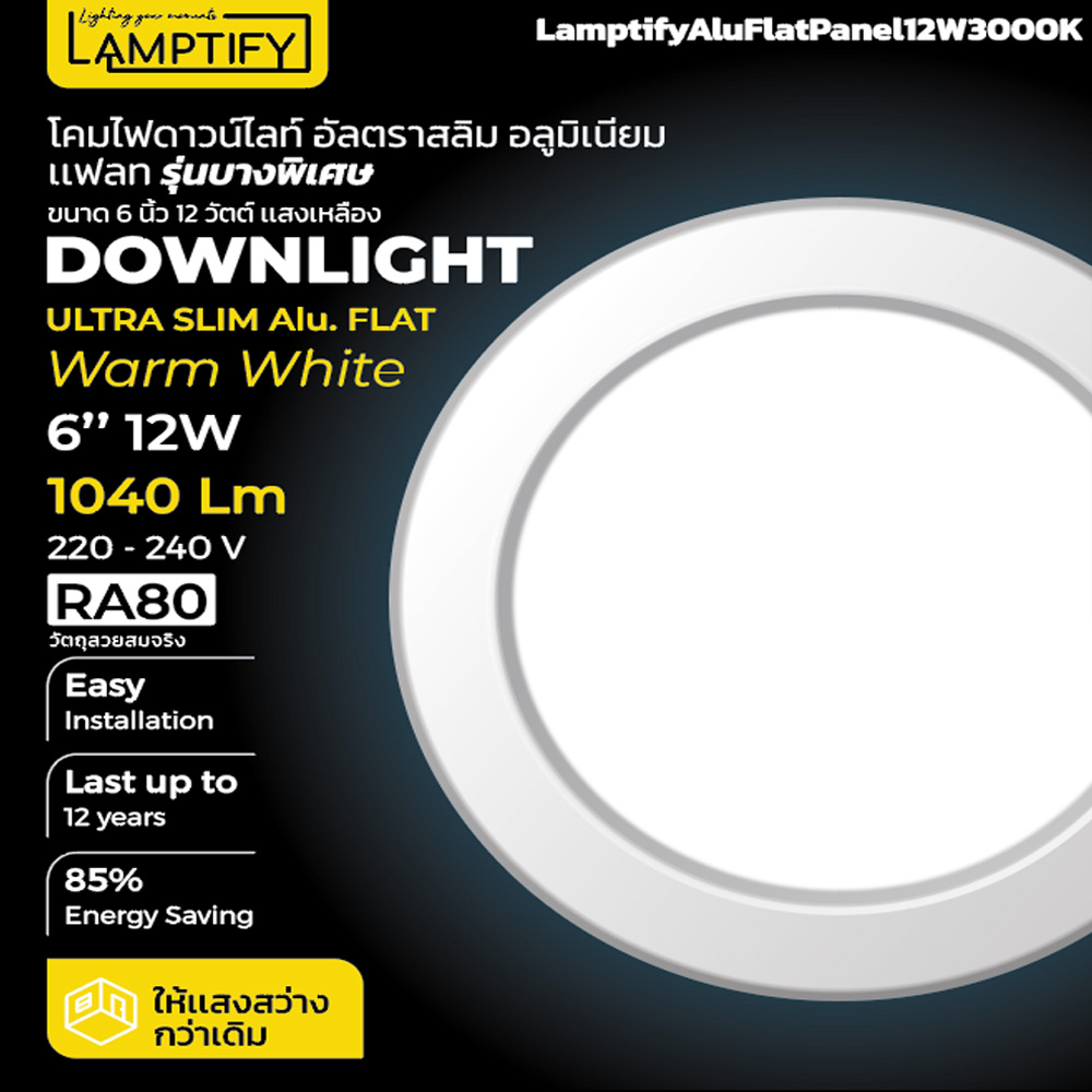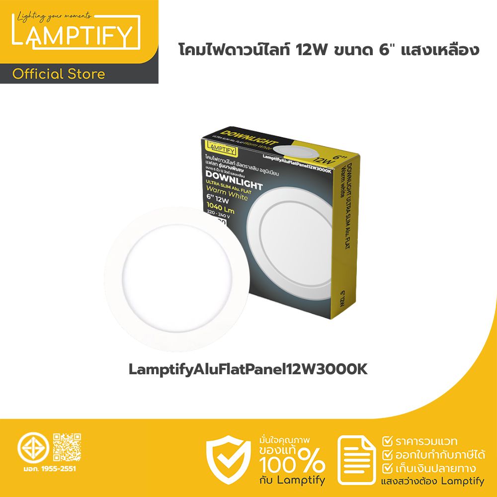Lamptify โคมไฟ LED Downlight AluFlat Slim Panel 6 นิ้ว 12w แสงเหลือง