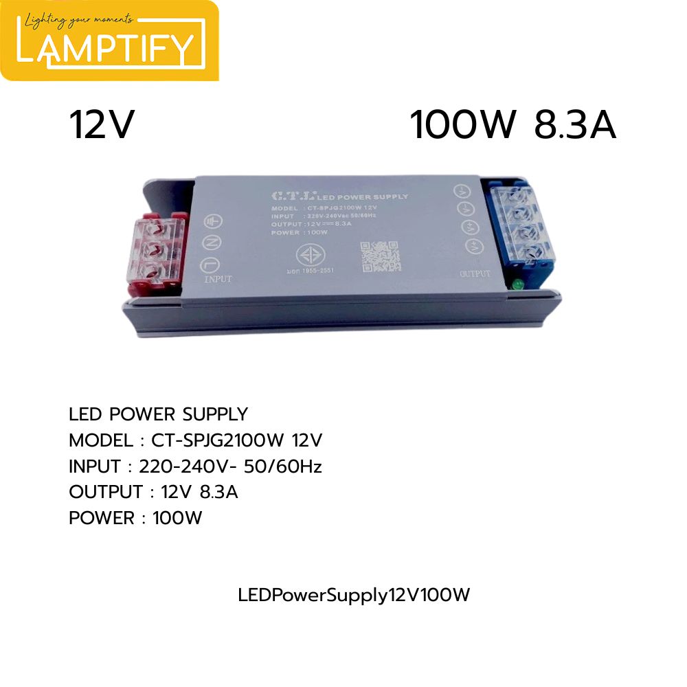 กล่องแปลงไฟ Switching LED Power Supply 12V 100W (8.3A) รุ่น MINI ขนาดเล็ก บาง ระบายความร้อนดี ป้องกันไฟเกิน ลัดวงจร
