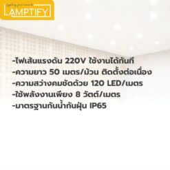 LiTON ไฟเส้น 220V SMD 2835 รุ่น MUSE กันน้ำ 50 เมตร/ม้วน 120LED/เมตร