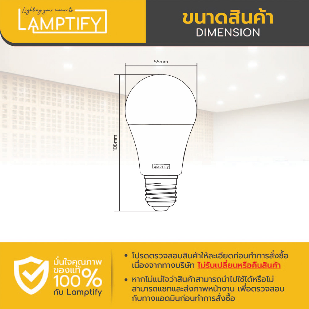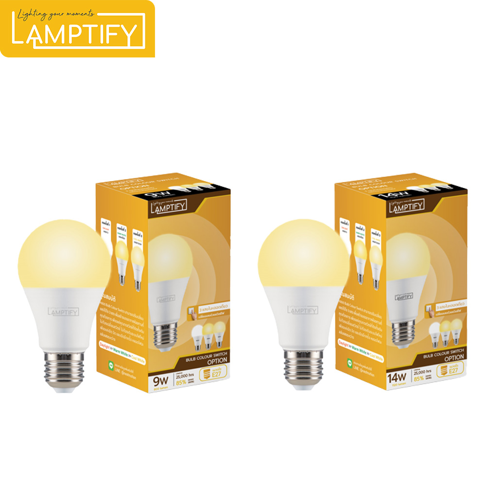 lamptify หลอดไฟ 3 แสง (3สีในหลอดเดียว) LED 9 วัตต์ 3 in 1 ขาว/ขาวนวล/เหลือง E27
