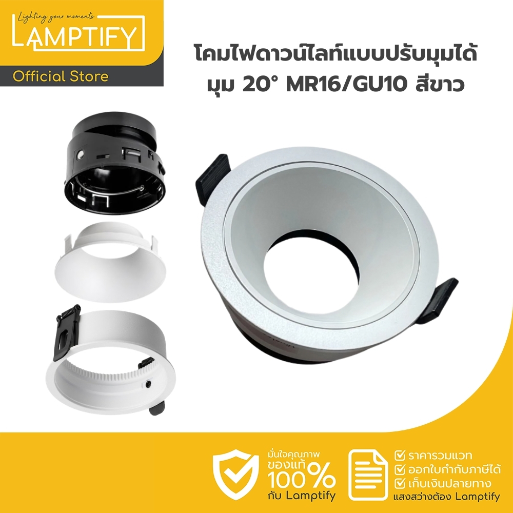 โคมไฟดาวน์ไลน์แบบปรับองศาได้ หลอดMR16/GU10 โคมอลูมิเนียมสีขาว