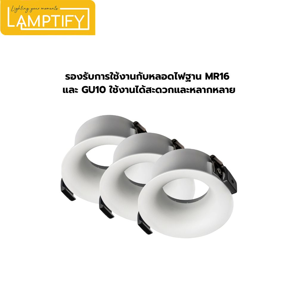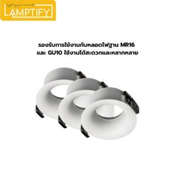 โคมดาวน์ไลท์ฝังฝ้า MR16/GU10 รุ่นนี้ เป็นโคมไฟสำหรับติดตั้งแบบฝังในฝ้าเพดาน ดีไซน์เรียบทันสมัย เหมาะกับบ้าน ร้านค้า หรือสำนักงาน จุดเด่นคือสามารถเปลี่ยนหลอดไฟและหน้ารีเฟลกเตอร์จากด้านหน้าได้ง่าย ช่วยให้สะดวกในการดูแลและปรับสไตล์แสงตามต้องการ (โคมเปล่าไม่มีหลอดไฟให้)