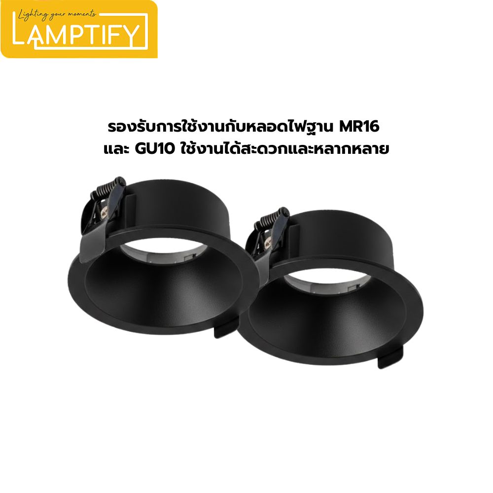 โคมดาวน์ไลท์ฝังฝ้า MR16/GU10 รุ่นนี้ เป็นโคมไฟสำหรับติดตั้งแบบฝังในฝ้าเพดาน ดีไซน์เรียบทันสมัย เหมาะกับบ้าน ร้านค้า หรือสำนักงาน จุดเด่นคือสามารถเปลี่ยนหลอดไฟและหน้ารีเฟลกเตอร์จากด้านหน้าได้ง่าย ช่วยให้สะดวกในการดูแลและปรับสไตล์แสงตามต้องการ (โคมเปล่าไม่มีหลอดไฟให้)