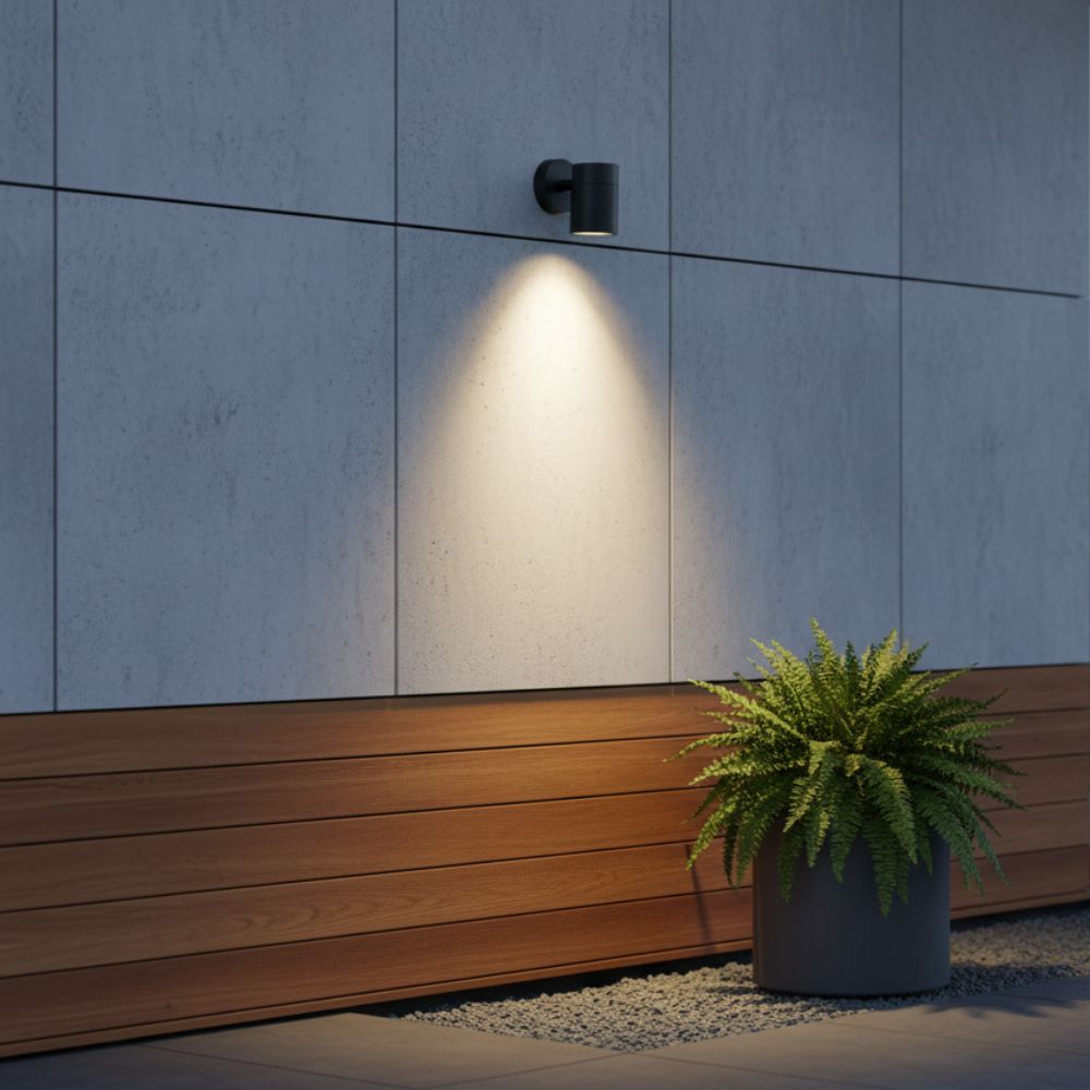 โคมไฟภายนอก ไฟกิ่งภายนอก วัสดุอลูมิเนียม และกระจก ขั้ว GU10 สีดำ 1 ด้าน