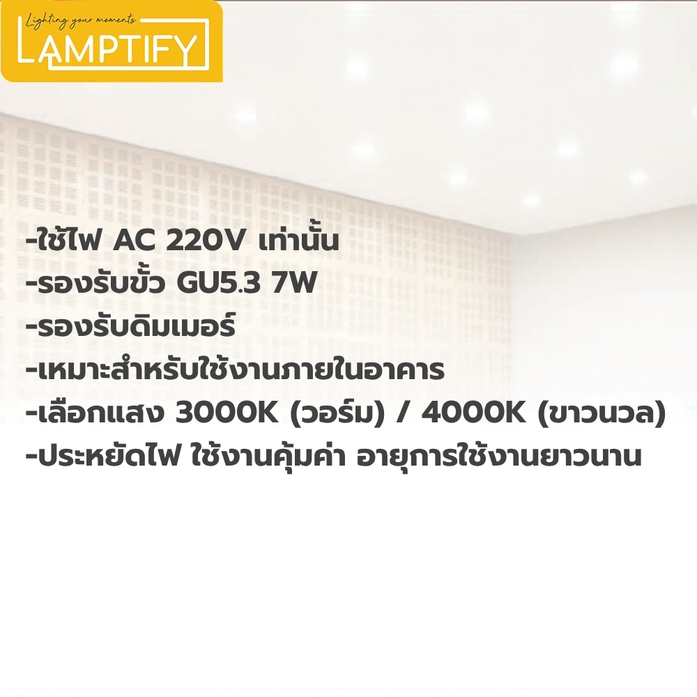 SL LIGHTING รุ่น GALAXYDIM LED 7W ขั้วหลอด GU5.3 รูปทรงทันสมัยสีขาว ให้ความสว่างเต็มประสิทธิภาพเหมาะสำหรับใช้ไฟส่องเน้นบริเวณเฉพาะจุด และให้ความสวยงาม เปิดแล้วไม่ร้อน ใช้งานง่าย ตัวเล็ก Fit ทุกโคม เหมาะสำหรับทุกไลฟ์สไตล์ ใช้งานร่วมกับโคมดาวน์ไลท์ภายในบ้าน ร้านค้า หรือคาเฟ่ ห้องนอน ห้องนั่งเล่น คาเฟ่ หรือ Exhibition