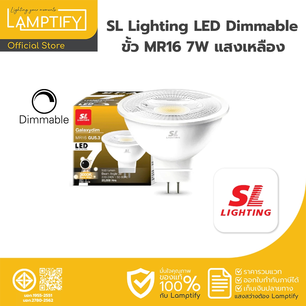 หลอดไฟ SL Lighting LED ขั้ว GU5.3 7W 3000K แบบหรี่แสงได้ (Dimmer)