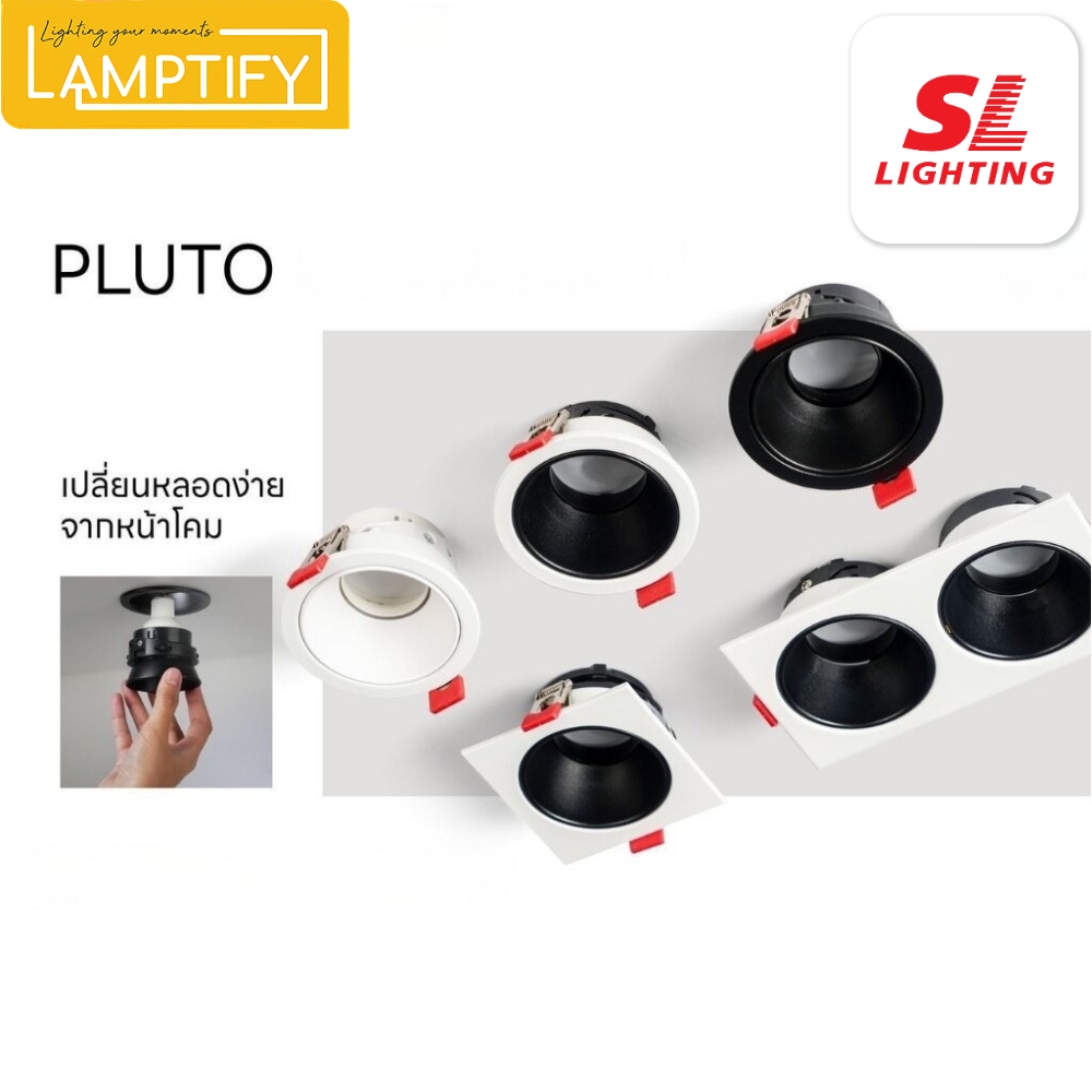 โคมดาวน์ไลท์ฝังฝ้า SL LIGHTING รุ่น Pluto รองรับหลอดขั้ว GU10 ดีไซน์เรียบ ทันสมัย ตัวโคมผลิตจากเหล็กและพลาสติกคุณภาพดี แข็งแรง ทนทาน สามารถเปลี่ยนหลอดไฟจากด้านหน้าได้ ติดตั้งง่าย เหมาะสำหรับใช้งานภายในบ้าน ร้านค้า หรือสำนักงาน